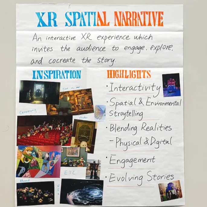 To create five mixed reality worlds over a 14-week semester, the ImmerX team shared a joy of imagination, welcomed the surprises of experimentation, and was grounded in communication, collaboration, and trust to explore ideas. Team members Linaixuan (Nina) Wang (Producer, Creative Director), Regina Xia (Technical Artist), Yawen Xiao (UXUI & Narrative Designer), Airan Xu (VFX Artist), Helen Yang (3D Artist), Oliver Zhu (Programmer, Sound Designer) with Ruth Comley (Project Instructor), each brought their inspirations and diverse technical and artistic backgrounds.